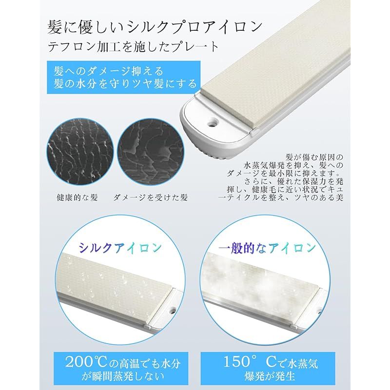 業界初の布製プレート:本ヘアアイロンは、従来の金属プレートとは異なり、布製のヒーターカバーを採用しています。熱が髪に直接触れにくい構造で、過度な加熱を抑え、ヘアダメージのリスクを低減します。使用時に気になるような焦げたニオイも発生しにくく、繊細な髪やダメージヘアの方にも使いやすい設計です。なめらかなストレートヘアと自然なツヤ感をサポートします。