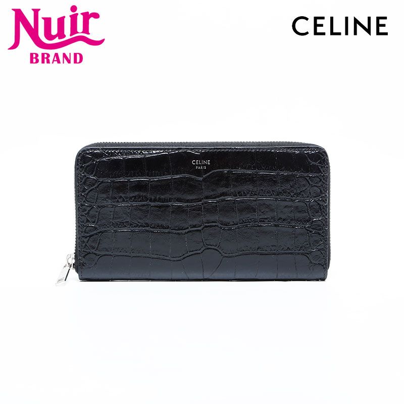 CELINE セリーヌ 長財布 型押しレザー コーティング ラウンドジップ