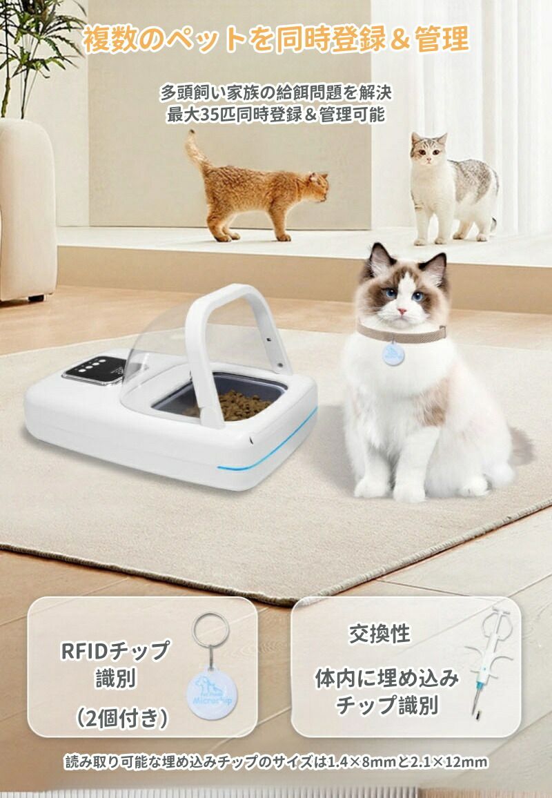 独自のチップ識別技術により、飼い主は誤って食べることを心配することなく、ペットの食事を1対1で管理できます。