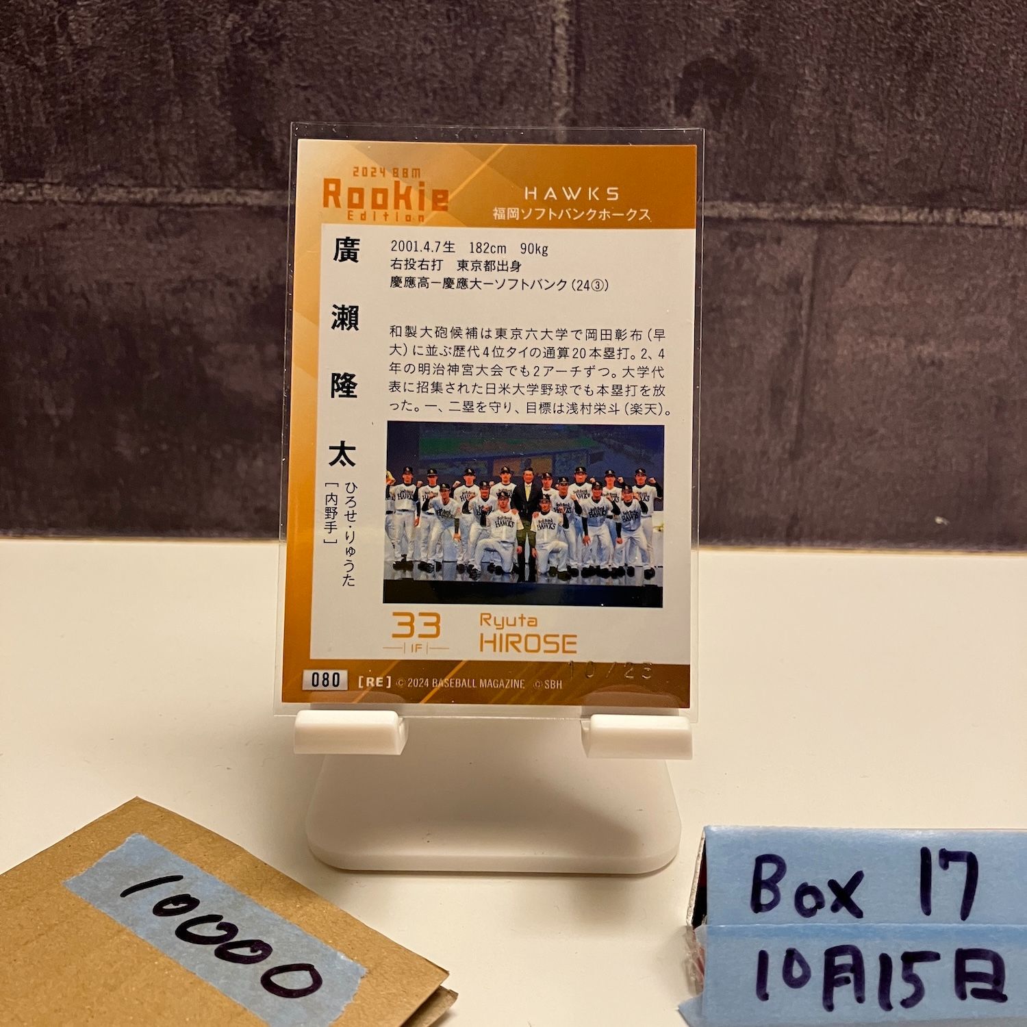 2024 BBM 廣瀬隆太 10/25 青箔サイン 福岡ソフトバンクホークス RC ルーキー Rookie Edition