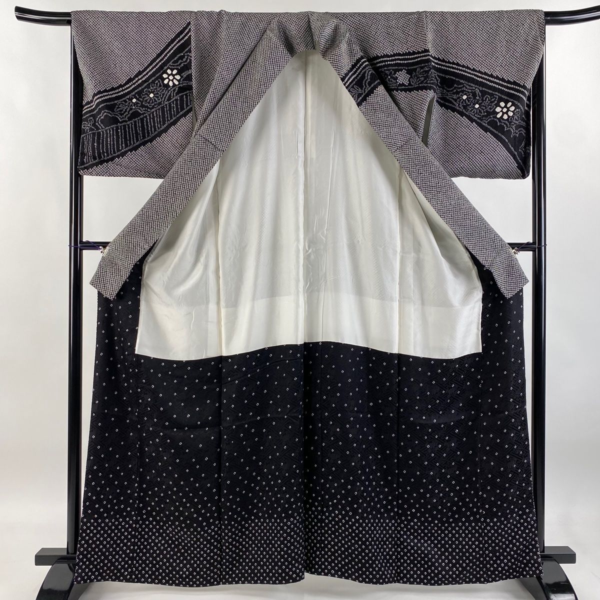 訪問着 身丈162 cm 裄丈66.5 M 袷 花唐草 亀甲 総絞り 黒 正絹 秀品