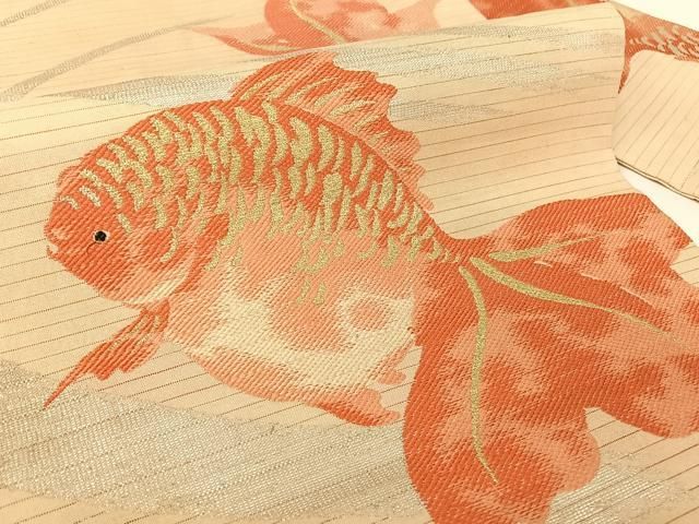 平和屋着物 夏物 アンティーク 大正ロマン 九寸名古屋帯 金魚 金銀糸 正絹 np