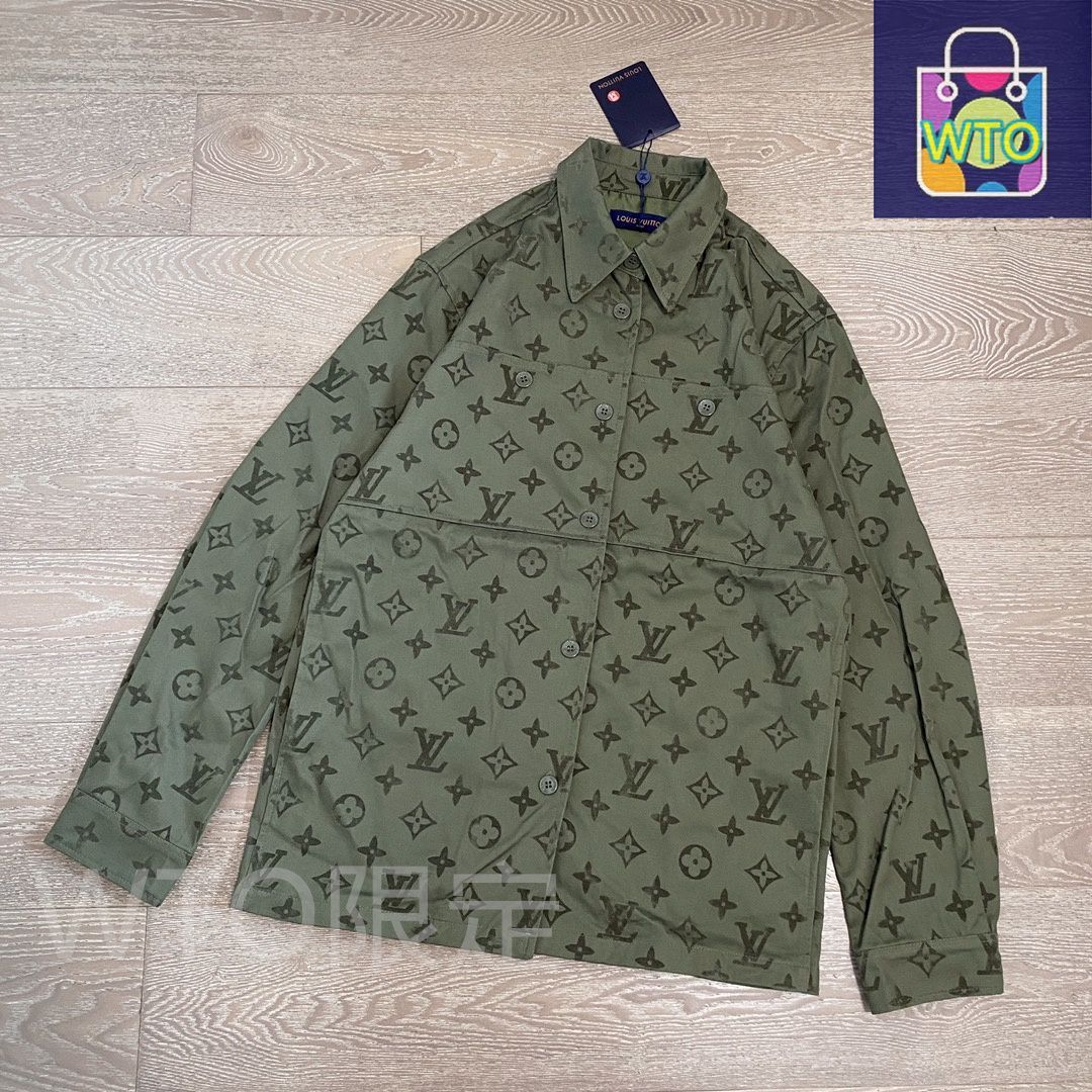春の 商品 ルイ ヴィトン Louis Vuitton フロッキングプレス加工されたアルファベットと陰模様の綿質シャツタイプのキャンバスワークウエアジャケット WTO輸入1