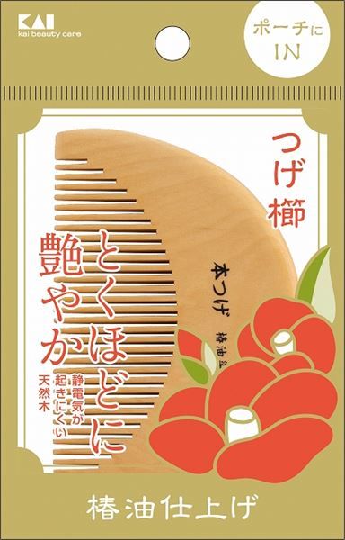 天然素材のつげから丁寧に作られ、椿油仕上げで髪にやさしい半月形のつげ櫛。半月形はコンパクトなのでメイクポーチ、バッグなどに入れて持ち歩きにも。静電気を抑え髪通りを滑らかにすることで、枝毛、切れ毛を防ぐ。