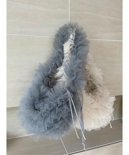 存在感たっぷりなたっぷりフリルのバッグが、さらにブラッシュアップして再登場! 今回はシルバーラメドット入りのシフォン生地を使っており、春夏のコーディネートの盛り上げ役にぴったりです。開口部の左右のホックを留めると、半月型からコロンとした丸型にチェンジ。さらにハンドルのドロストをキュッと絞ることで長さ自在に調節できる仕様なので、肩がけにしたり、ハンドルバッグにしたり、シーンに合わせて簡単に変えられます。ハンドルバッグにしたら、ドロストの細ゴムをキュッとリボン結びにしてポイント使いに。コーディネートのバランスに合わせてバッグの形を変えられるのはとても嬉しいポイントです。カラーバリエーションも豊富で、アイボリー、グレー、ブラック、ライトブルーの4色展開。開口部はジップで中身が見えない設計です。