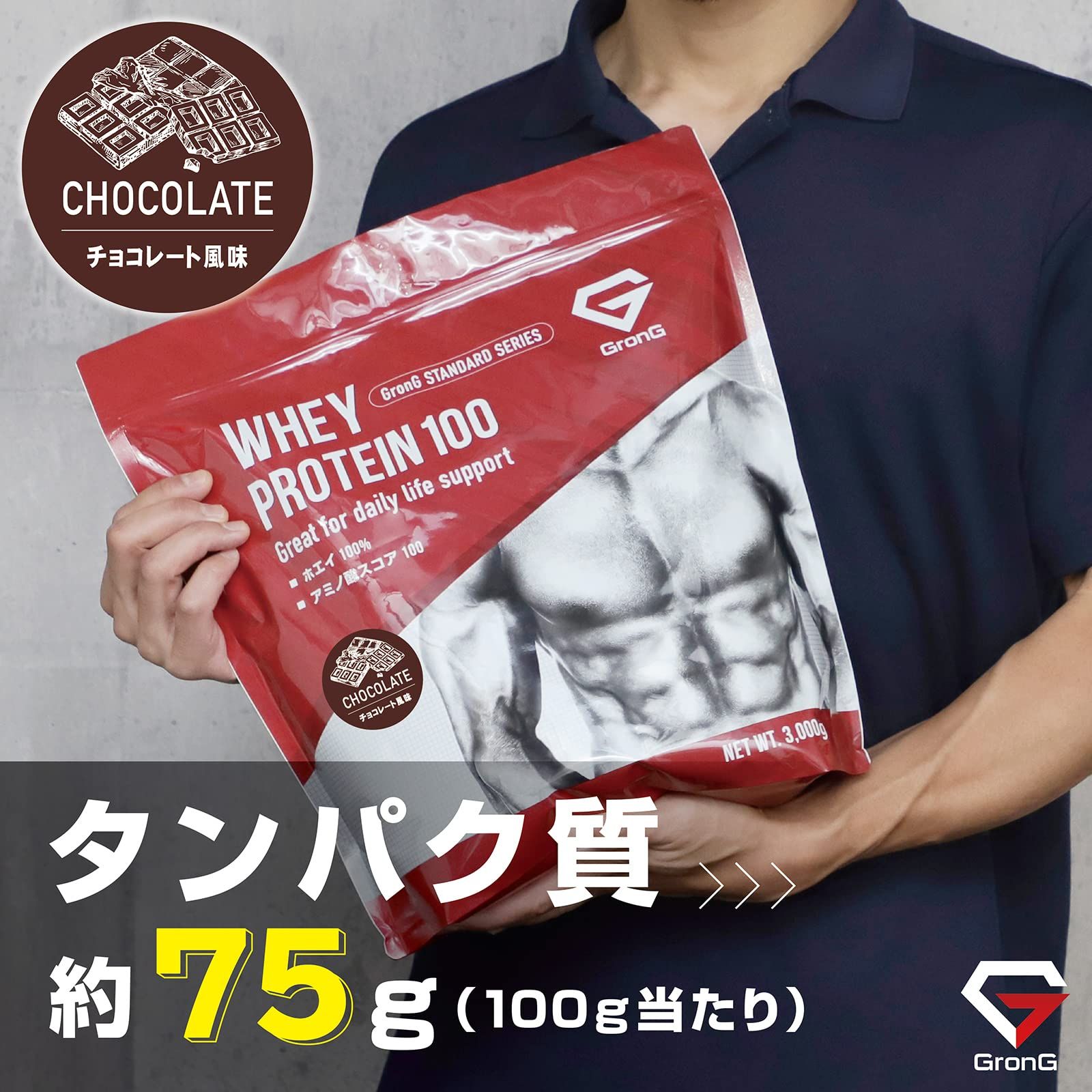 プロテイン ホエイプロテイン 3 kg チョコレート風味 ビタミン11種配合 製造 GronG グロング