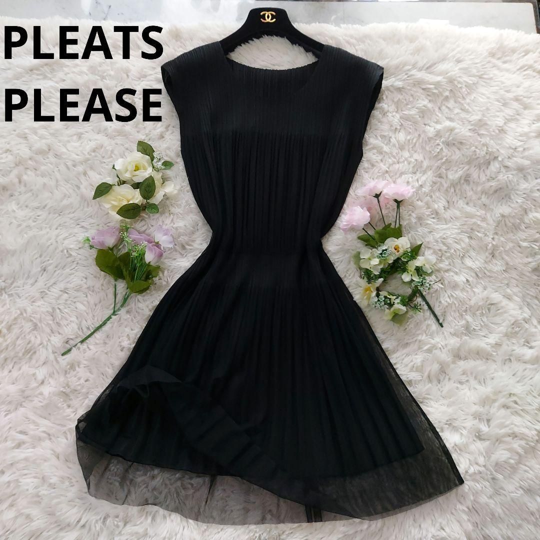 PLEATS PLEASE 黒 ノースリーブ プリーツワンピース 241010