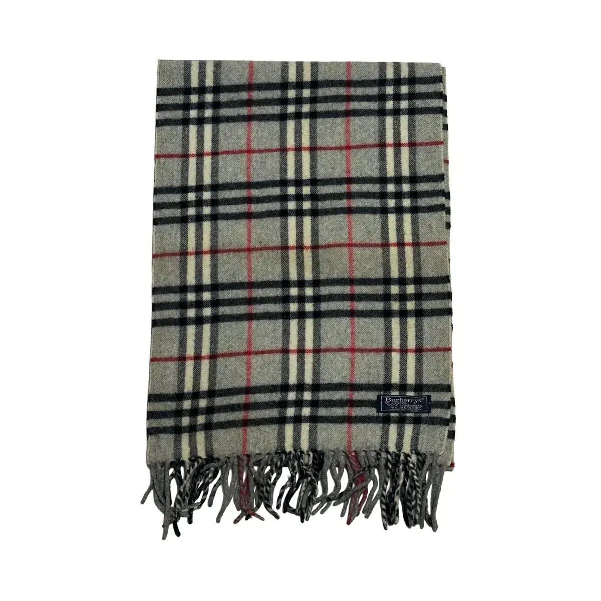OS BURBERRY バーバリー ノバチェック グレー ラムウール マフラー
