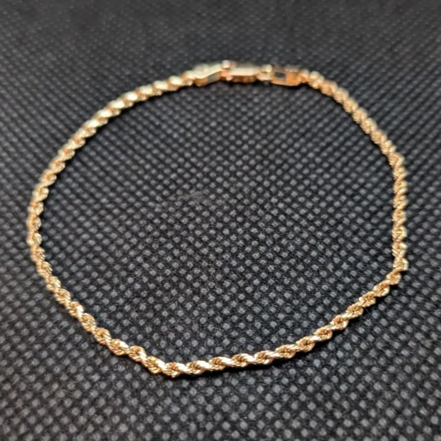 14 K無垢 イエローゴールド ダイヤモンドカット ロープチェーン ブレスレット ヴィンテージ