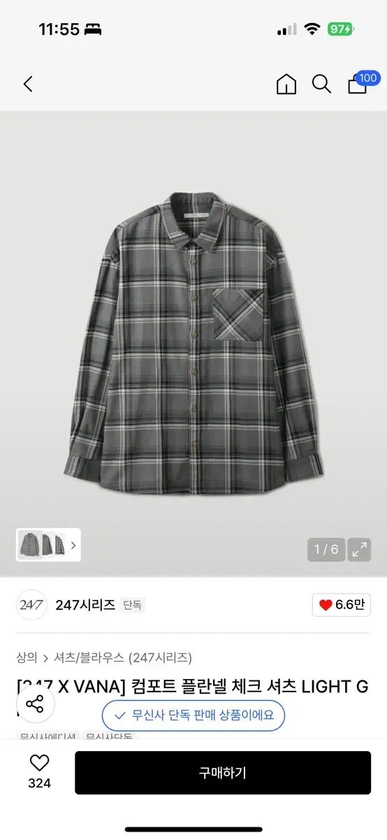 247シリーズ コンフォート フランネル チェックシャツ ライト グレー s