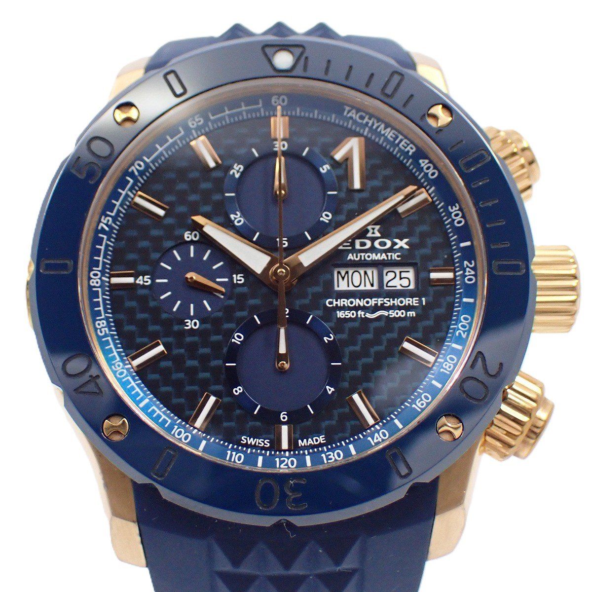 EDOX エドックス クロノオフショア1 自動巻き メンズ 腕時計 ブルーカーボン文字盤 ベルト2本付 01122-37 RBU 3-BUIR 3-L 管理2