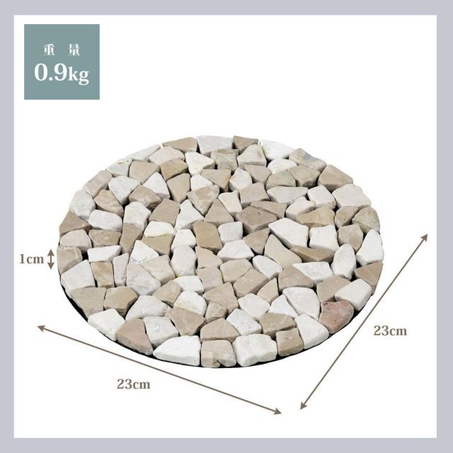 山善 YAMAZEN ガーデンマスター 天然石シート 直径23 cm ベージュ STR-23 BE 同色 セット モザイク調 ラウンドマット