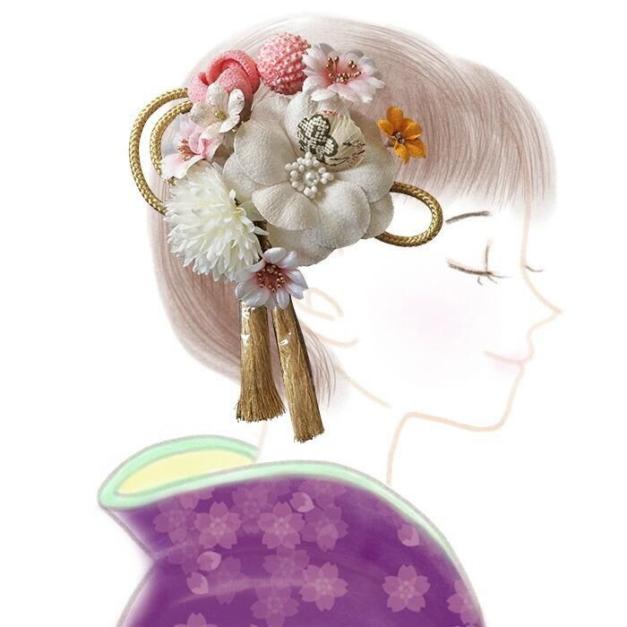 髪飾り 成人式 卒業式 3点セット 振袖 袴 花 大 ミニ uピン コーム タッセル ピンポンマム かのこ 赤 白 紫 選べる4タイプ 日本製 ケース付 wkx 1019