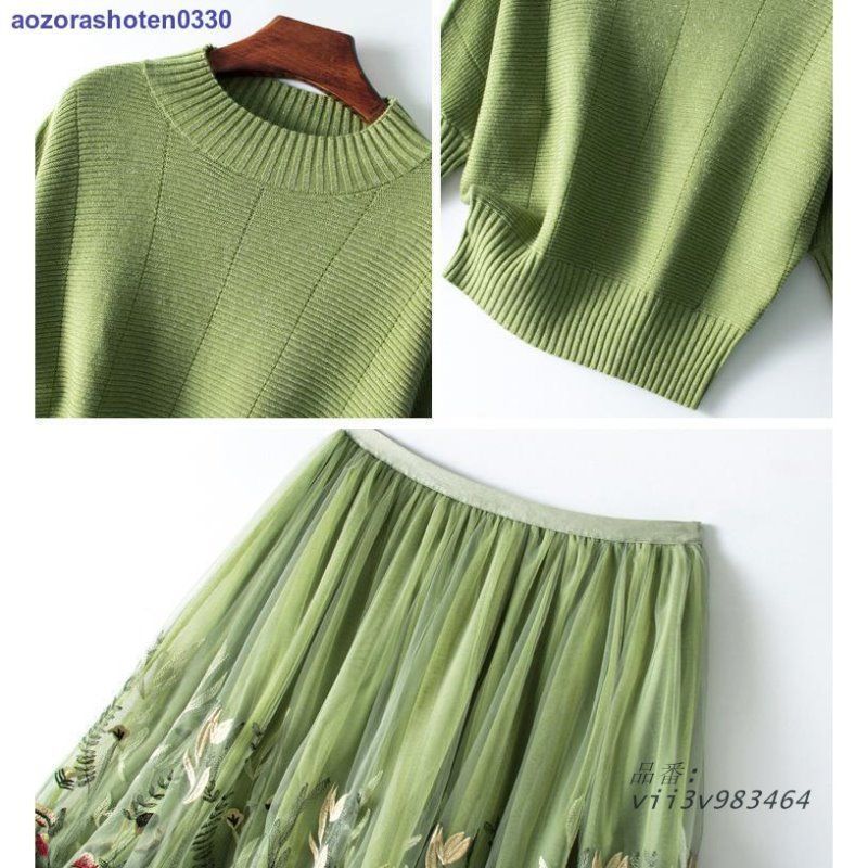 ニットセーター スカート 2点セット セットアップ Aライン 花柄 トップス ボ ニットドルマン vii 3 v 983464