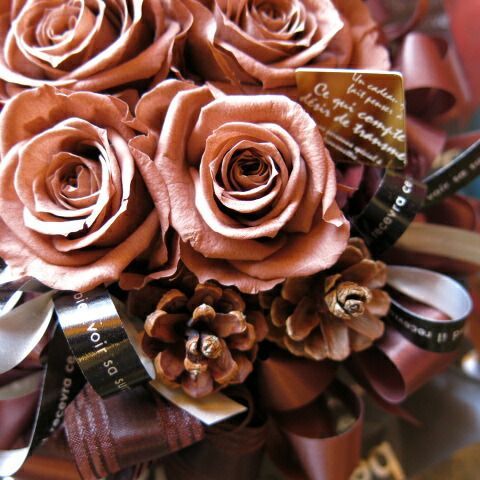 大人かわいい茶色系バラフラワーギフト