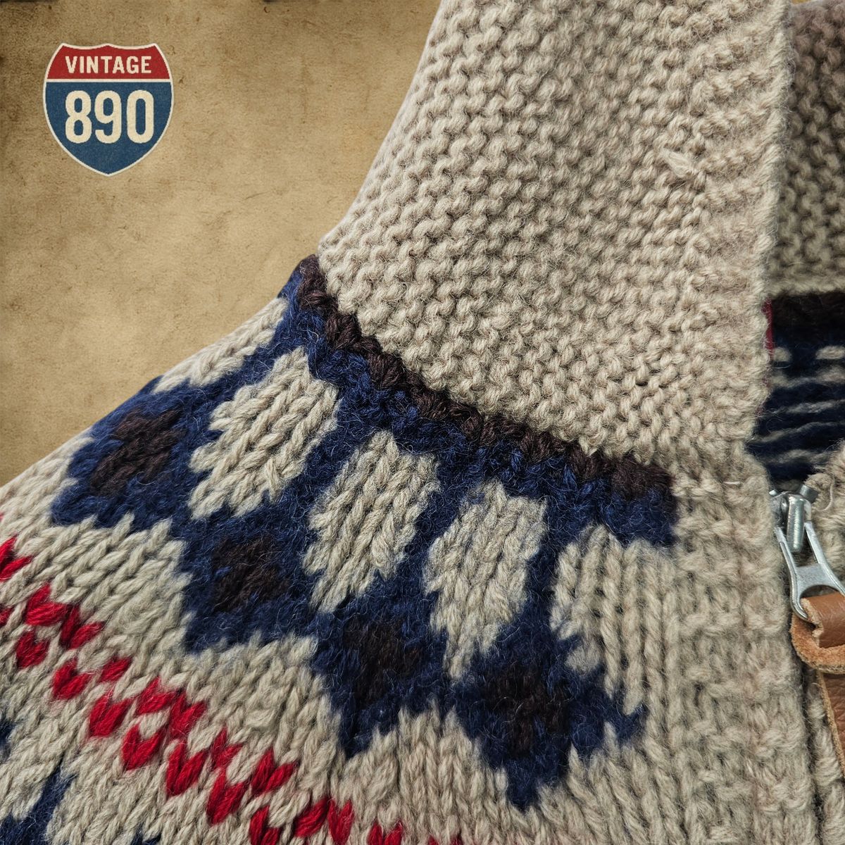 90 95 JPN ウール フェアアイル カウチンニット ジップアップ セーター