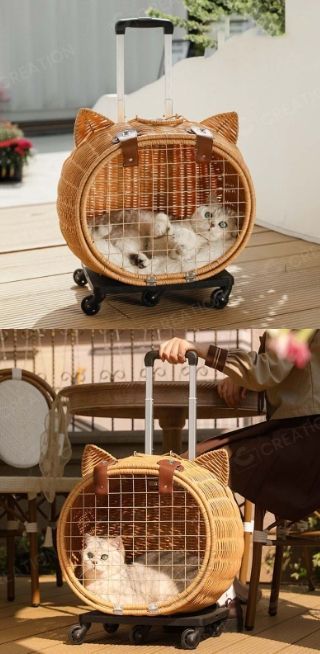完全に手編みのケージに、ホイール付きのカートを組み合わせることで、外出がより楽になり、ペットを背負って外出する必要がなくなり、背中のストレスが軽減されます
