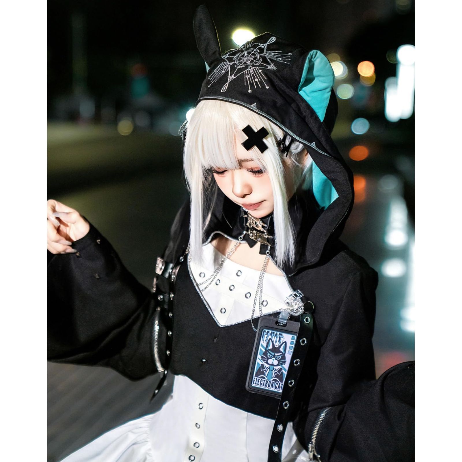 ロリータワンピース ねこみみ パーカー 地雷系 ジャンパースカート ファスナー チェーン ベルト ゴシック風 グラデーション