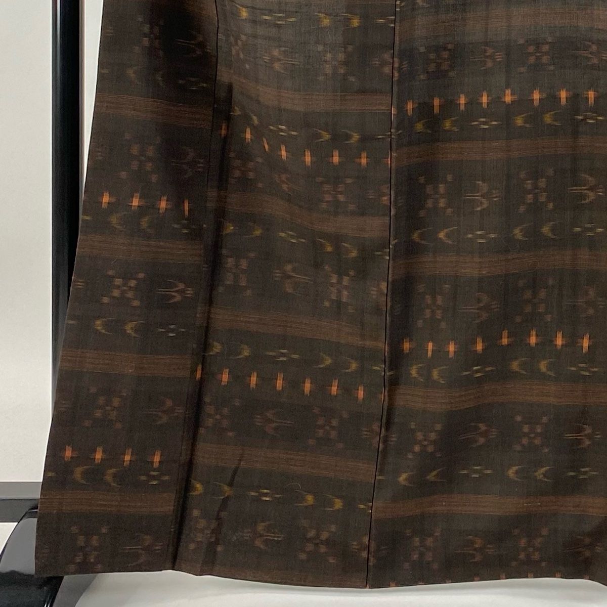 紬 身丈166 cm 裄丈66 M 袷 久米島紬 燕 段縞 焦茶色 正絹