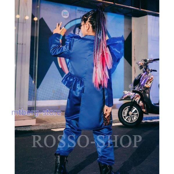 ダンス衣装 キッズ ブルー キラキラ セットアップ トップス パンツ 韓国 チアダンス衣装 かっこいい 演出服 応援団 練習着 ジャズダンス ガWP売り切れ間近