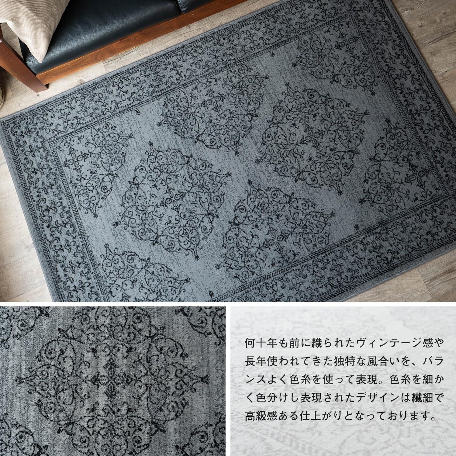サヤンサヤン オーナメント ラグマット オーディン 140x200 1.5畳 グレー ベルギー製