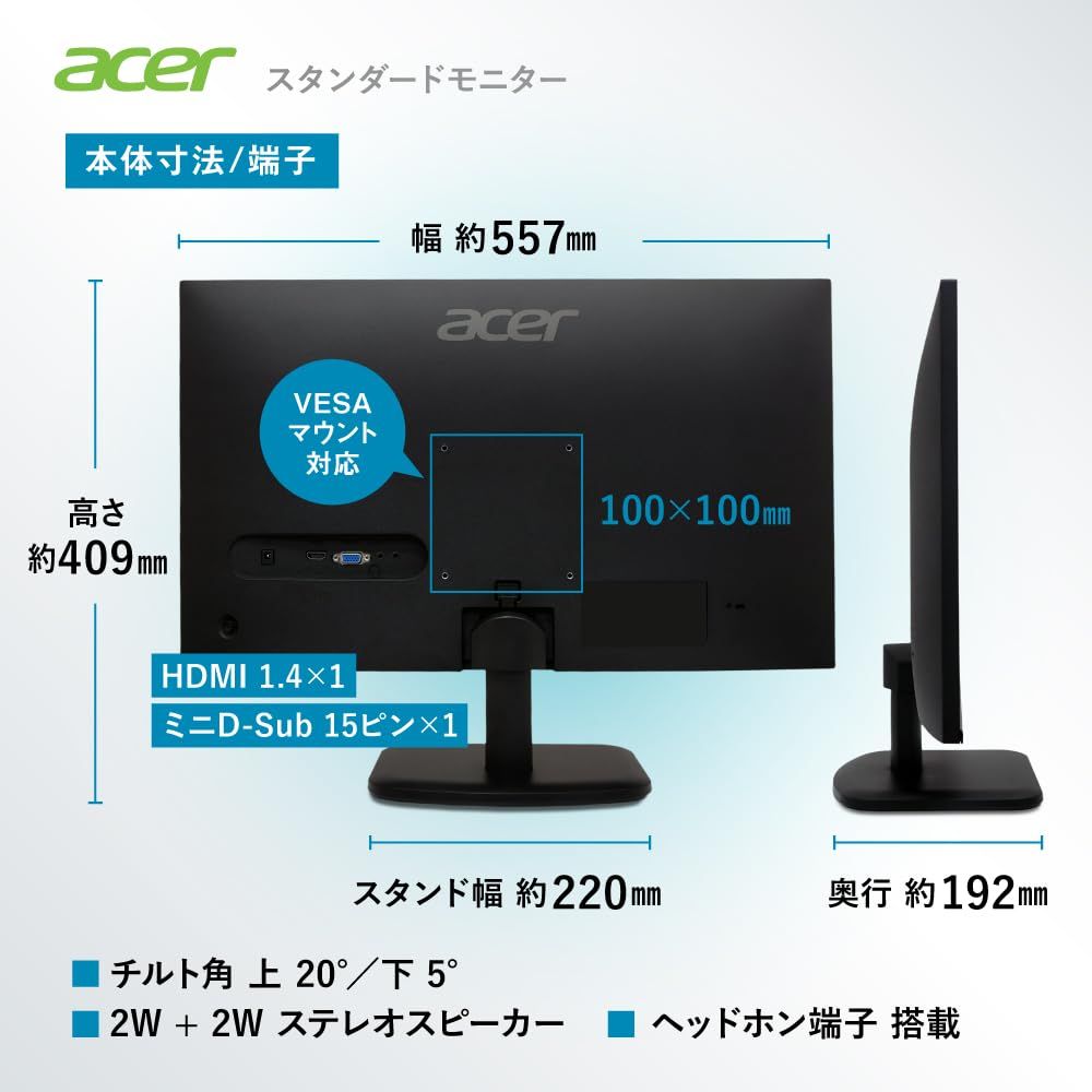 本製品のメーカーサポートは、下記より確認ください。 お問い合わせ窓口やよくある質問もご案内しております。 サポート情報ページ:https://www.acer.com/jp-ja/support/ 営業時間:10時~19時 365日 ※当社指定休業日除く 24.5インチのフルHD(1920×1080)IPSパネルは、見る角度による色の変化やグレー反転を感じさせることなく、どこからでも均一で美しい映像を映し出します。非光沢仕様により、光の映り込みを抑え、sRGB 99%の色域によって細部まで鮮やかに、そして繊細に表現。画面いっぱいに広がるフルHDの豊かな映像体験をどうぞ。