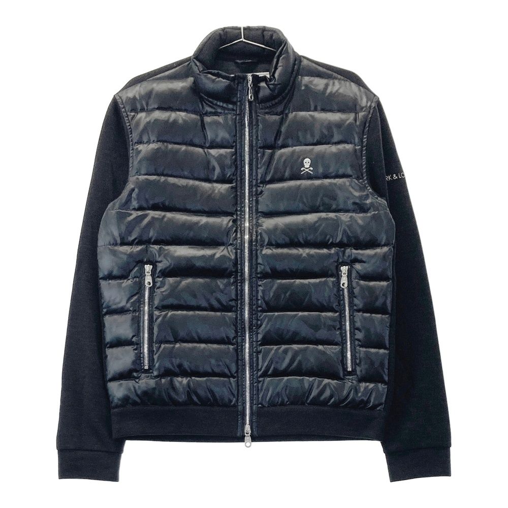 サイズ M MARK-LONA マークアンドロナ スウェット切替 ダウンジャケット カモフラ スカル 総柄 ブラック系 ゴルフウェア メンズ ストスト
