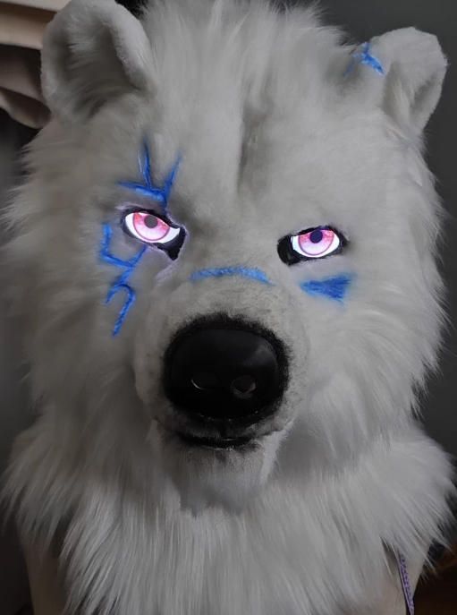 ・目は電子式で、色の変更が可能です。顔の模様は蛍光塗料を使用しております。