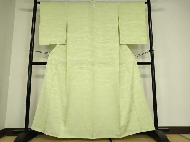 平和屋着物 上質な色無地 単衣 流水地紋 若芽色 正絹 az