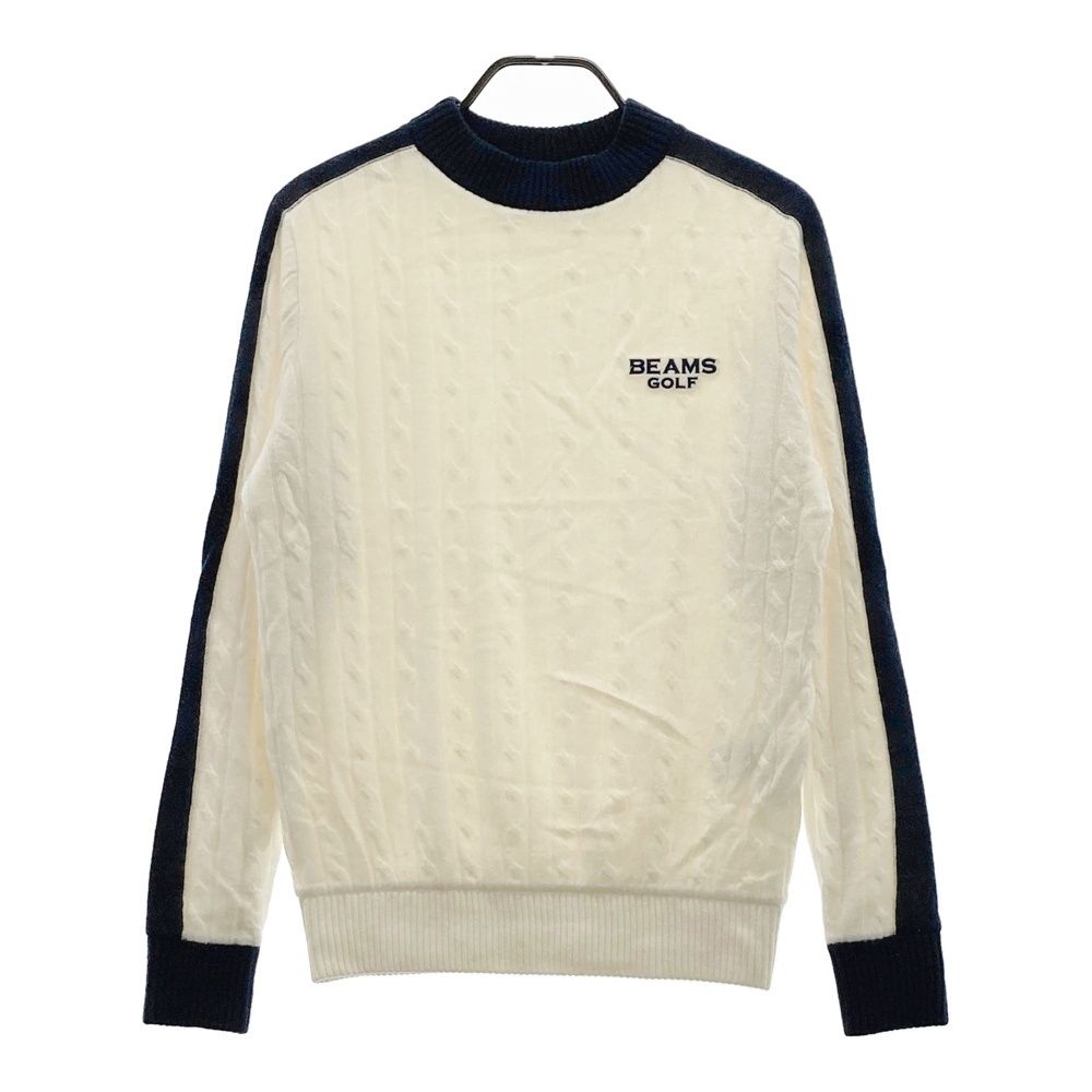 サイズ M BEAMS GOLF ビームスゴルフ モデル 裏地付 ハイネック ニットセーター ホワイト系 ゴルフウェア メンズ ストスト