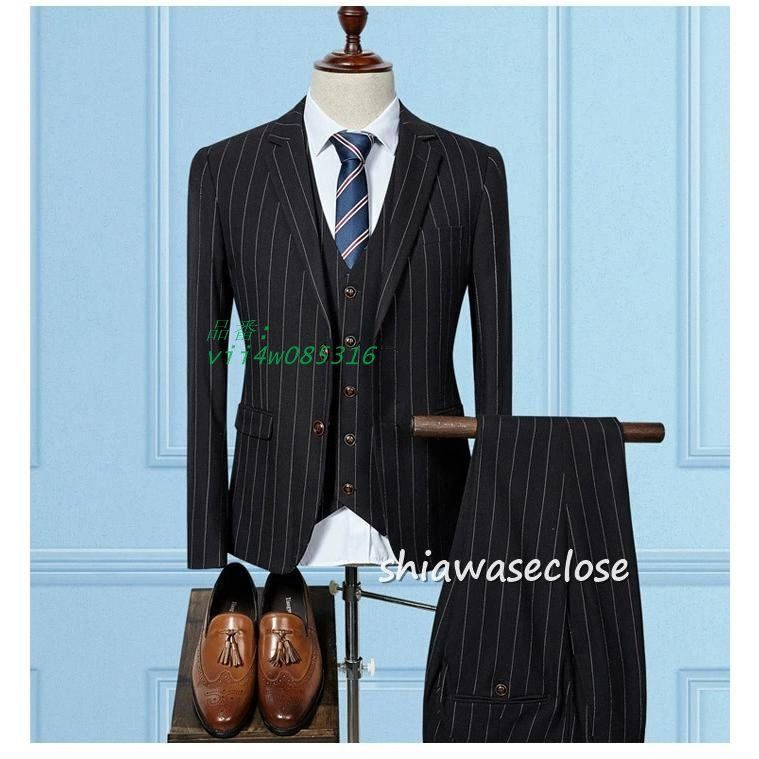 スーツ メンズ おしゃれ ビジネススーツ ストライプ カジュアルスーツ3ピーススーツ フォーマルスーツスーツセットアップ 洗える 細身紳士服通勤結婚式 vii 4 w 085316