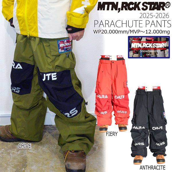25-26 マウンテンロックスター パラシュートパンツ PANTS スノーボード ウエア パンツ 25-26-PT-MRS フィエリ チーブ アンスラ S M L XL XXL