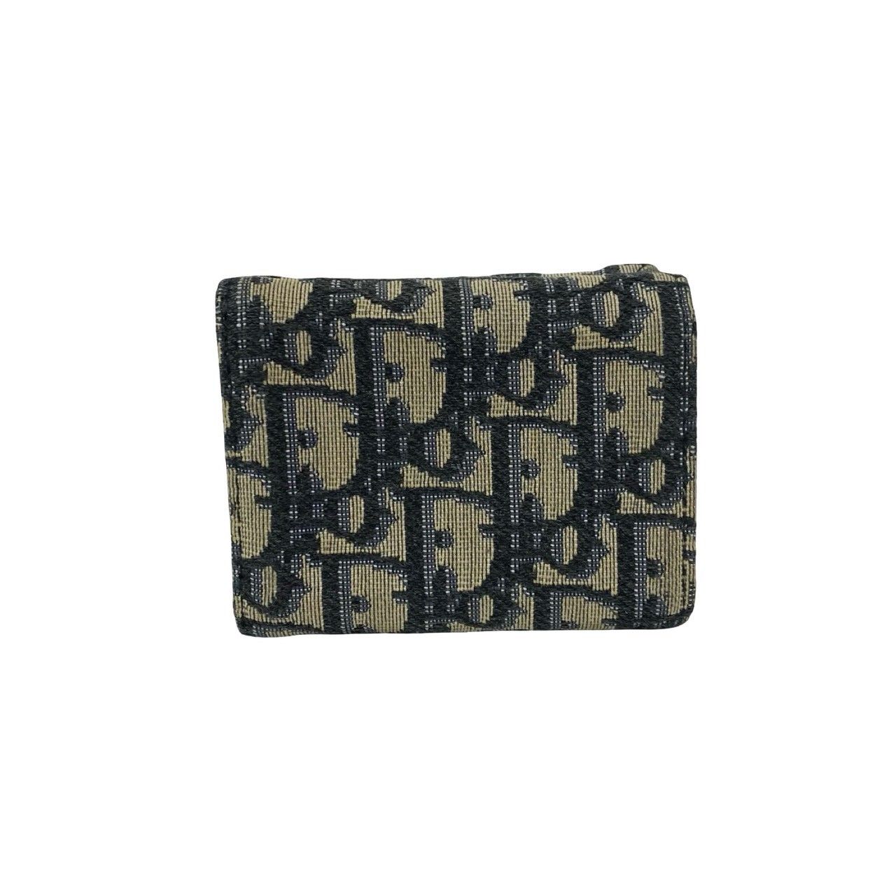 箱 袋付き Christian Dior ディオール トロッター 柄 キャンバス レザー 本革 三つ折り財布 ミニ ウォレット ネイビー 25171