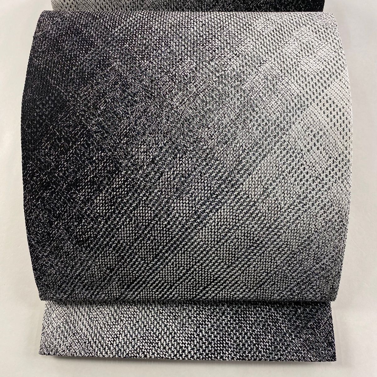 袋帯 やまと 幾何学模様 銀糸 ぼかし 黒 全通 正絹