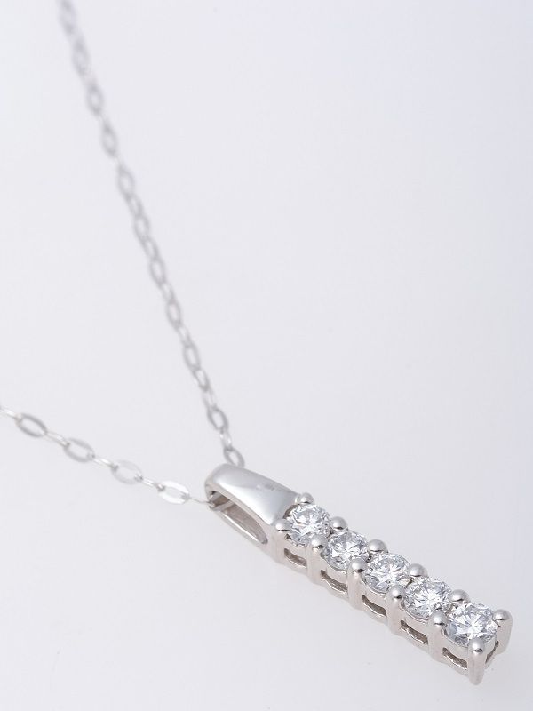 #説明 : プラチナ(999)の枠に合計#0.20ct のダイヤモンドが縦にセットされたネックレスです。