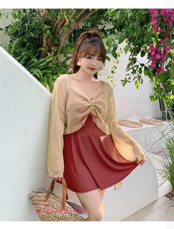 2点セット 水着 大きいサイズ レディース 体型カバー ぽっちゃり 服みたいな ワンピース ボレロ おしゃれ かわいい オールインワン ハイウエスト オトナ女子 温泉 露出控えめ セクシー 韓国風 大人 女性用 水着 20代 30代 40代 。 細見え ラッシュガード レッドZU