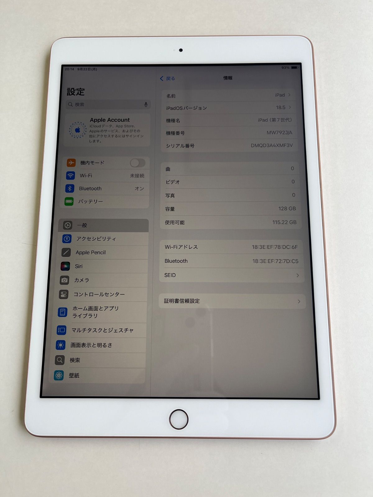 iPad 第7世代 128 GB ゴールド バッテリー91 MW 792 J A