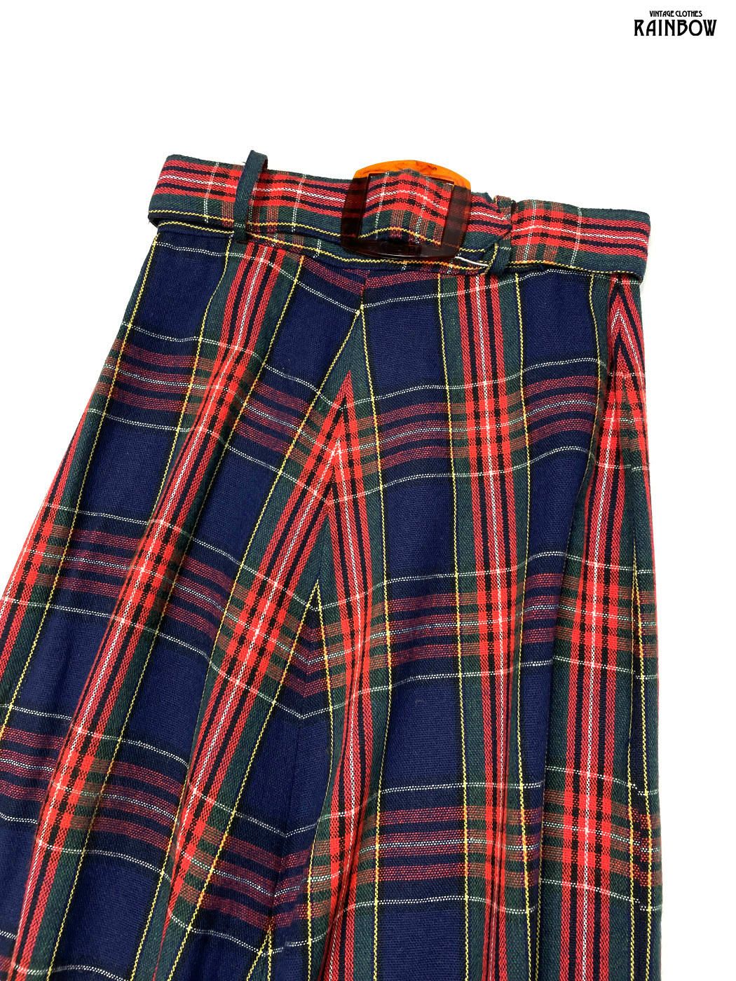 古着 ベルト付き ユニオンメイド チェック柄 ウール ロング丈 スカート 紺 btu 2509112