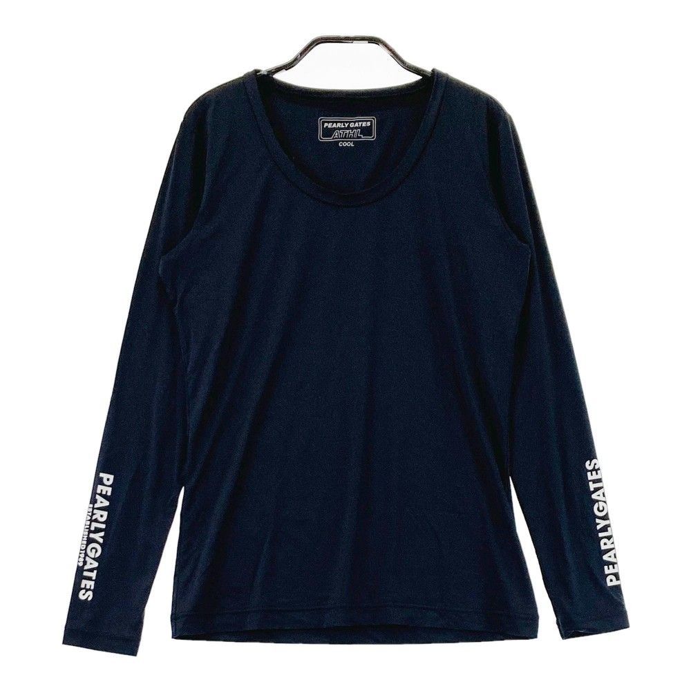 サイズ 2 PEARLY GATES パーリーゲイツ 袖ロゴ 長袖インナーTシャツ ネイビー系 ゴルフウェア レディース ストスト