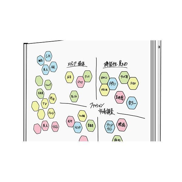 ブレインストーミングに便利なホワイトボード加工の六角マグネットシート。