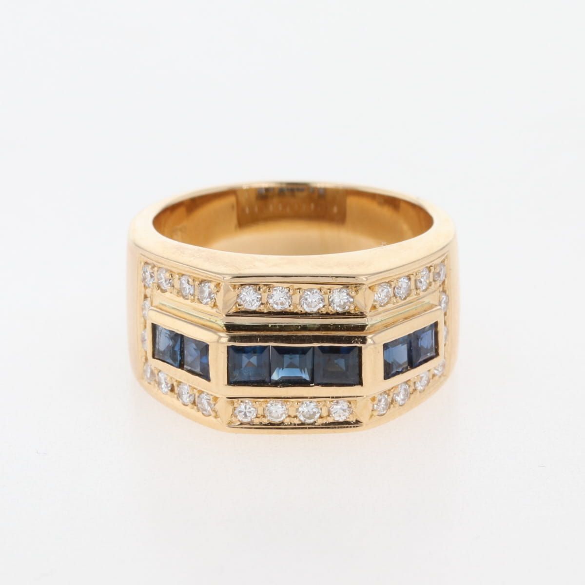 サファイア デザインリング YG イエローゴールド 指輪 メレダイヤ リング 12号 K 18 ダイヤモンド レディース