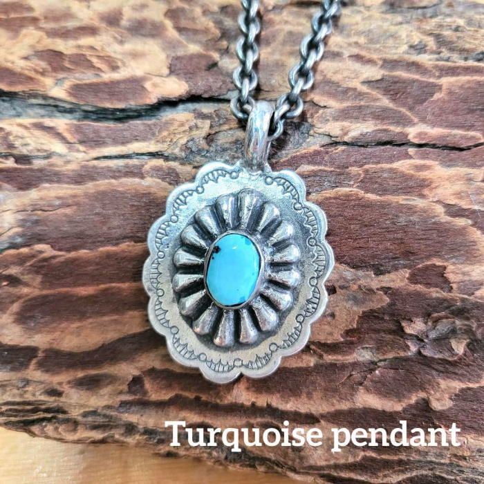 rym-262 ターコイズペンダントスタンピングトップ ハンドメイド インディアン ナバホ メンズ レディース ネックレス インディアンジュエリー
