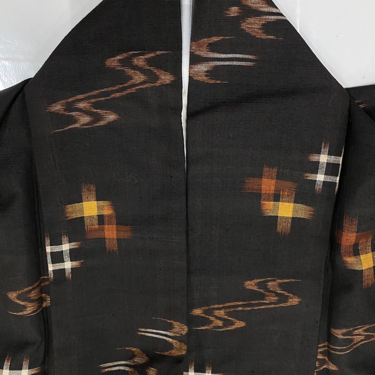 紬 身丈157.5 cm 裄丈65.5 M 袷 燕 井桁絣 焦茶色 正絹