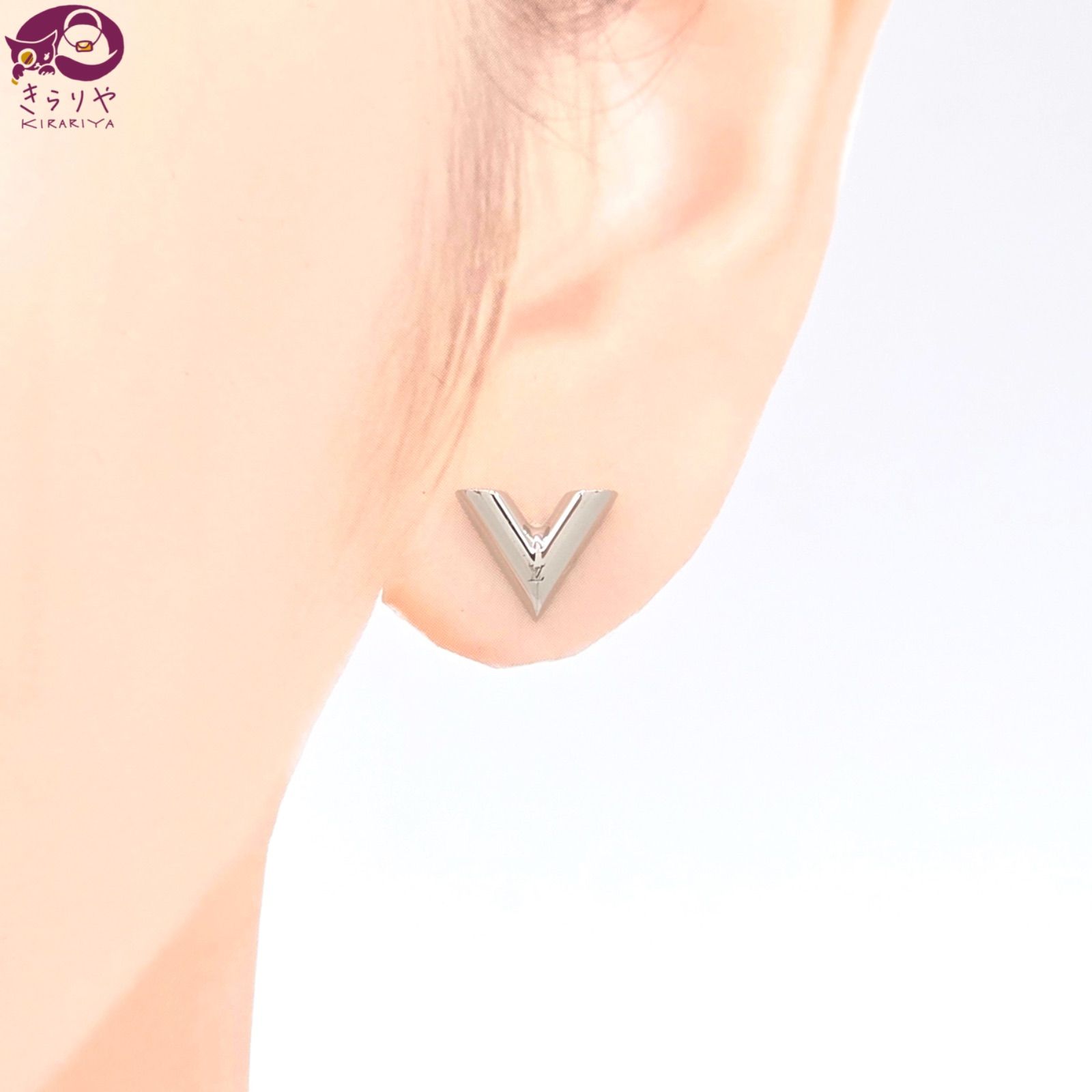 LOUIS VUITTON ルイヴィトン M 63208 ピアス・エセンシャル V 片耳 社外キャッチ シルバー メタル シグネチャー LVイニシャル刻印 スタッドピアス