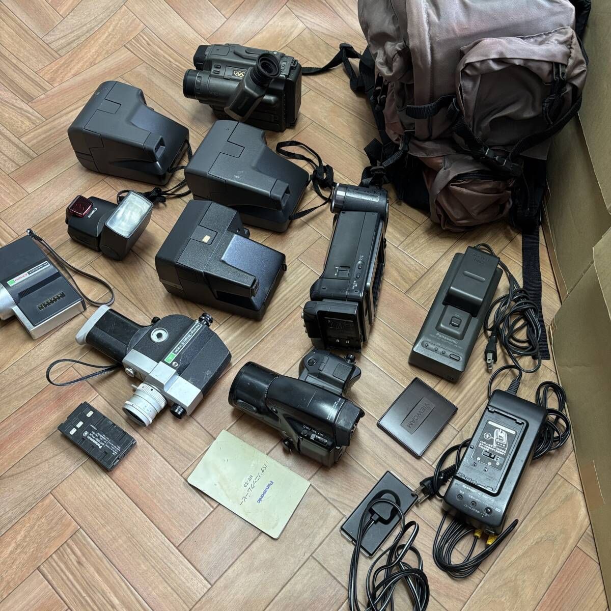 ポラロイドカメラや8mm関連機器、フラッシュなどを含むまとめセットです。