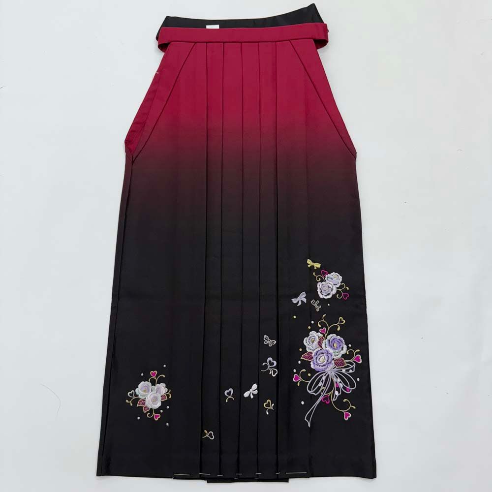 袴 L size 紐下丈95 cm 行灯袴 卒業袴 女性用袴 ぼかし 刺繍 赤 エンジ 4721