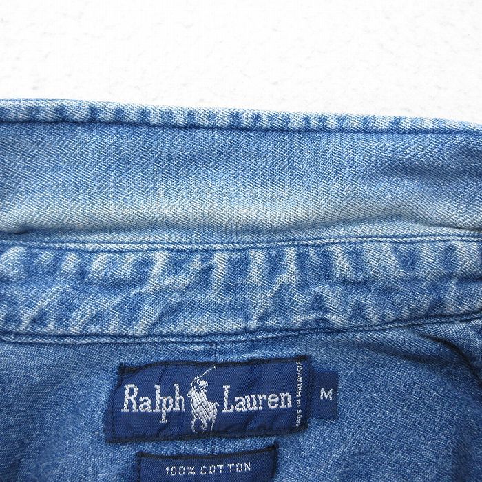 L 古着 ラルフローレン 長袖 ブランド シャツ メンズ 90 s ワンポイントロゴ コットン ボタンダウン 紺 ネイビー デニム spe 25 oct 27