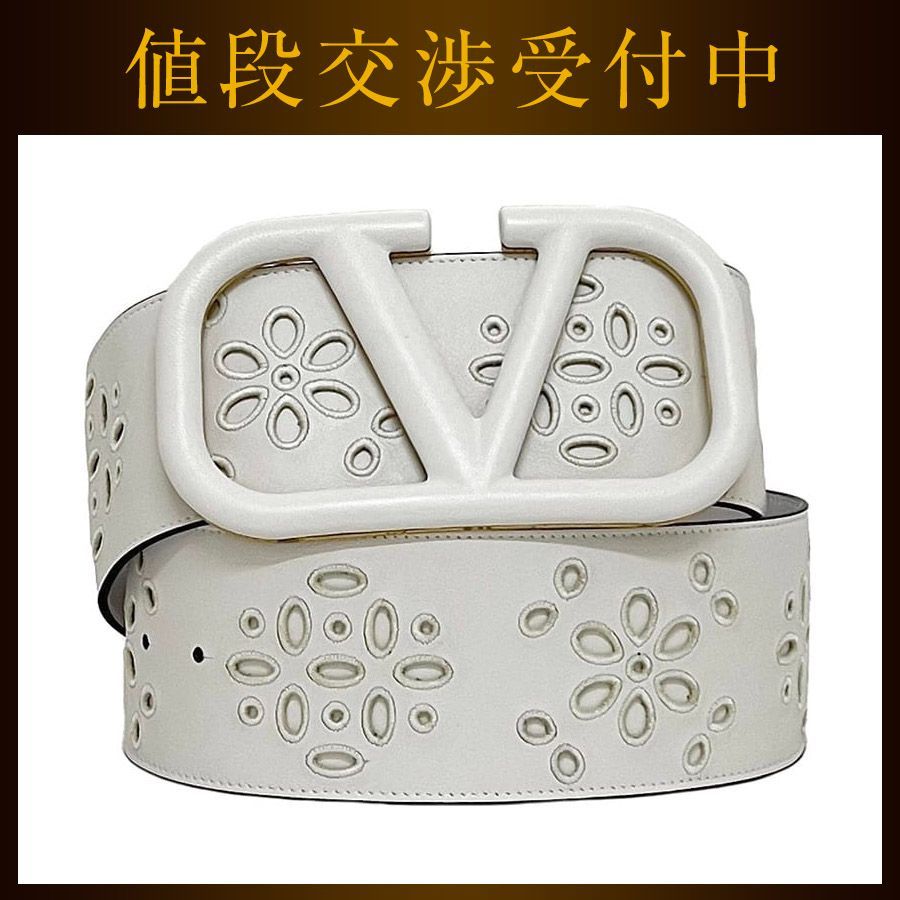 ヴァレンティノ ガラヴァーニ ベルト f-24333 ホワイト WW2T0S10YTR 太ベルト 美品 レザー 新品 VALENTINO GARAVANI 花 パンチング ウエストベルト ロゴバックル V 白 レディース 女性 アパレル シンプル レア ビッグバックル ブランド 本物 鑑定済み