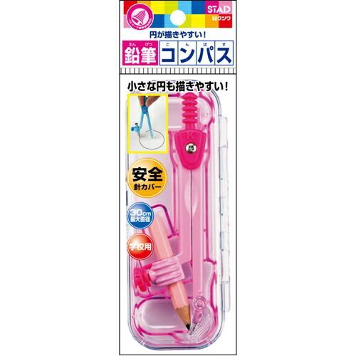 ダイキャスト製で低重心、自動中心器付で小さい円も描きやすい鉛筆用コンパスです。かわいいパステルカラー。描画可能最大直径30cm。紛失しない開閉式の安全針カバー付。鉛筆を固定するホルダー部分には保護プレートが付いているので鉛筆にキズを付けずにしっかり固定することができます。【検索ハッシュタグ】#コンパス#芯