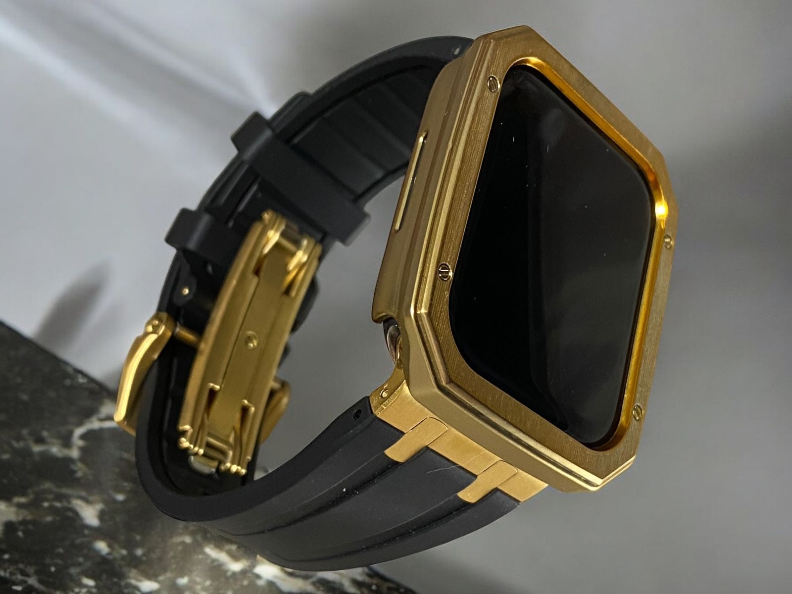ゴージャスなデザインのApple Watch用ベルトです。金属部分には高品質な316Lステンレススチールを使用し、バンドと一体化した最新のデザインです。防水性能を備え、ボリューム感や迫力のある仕上がりになっています。バックルは強化型にカスタムされています。
